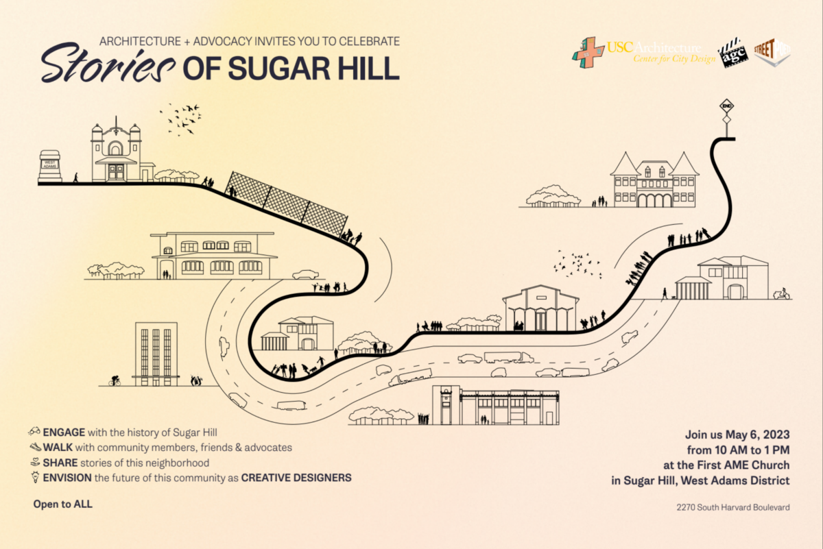 Architecture + Advocacy’s “Stories of Sugar Hill” campaign brought together residents, USC students, and community organizations like the West Adams Heritage Association (WAHA) and the Amazing Grace Conservatory (AGC). Over five months, the project conducted interviews, neighborhood canvassing, and workshops to collect stories and map Sugar Hill’s cultural significance. The goal was to document the neighborhood’s history, not just through its architecture but also through the voices of its residents.